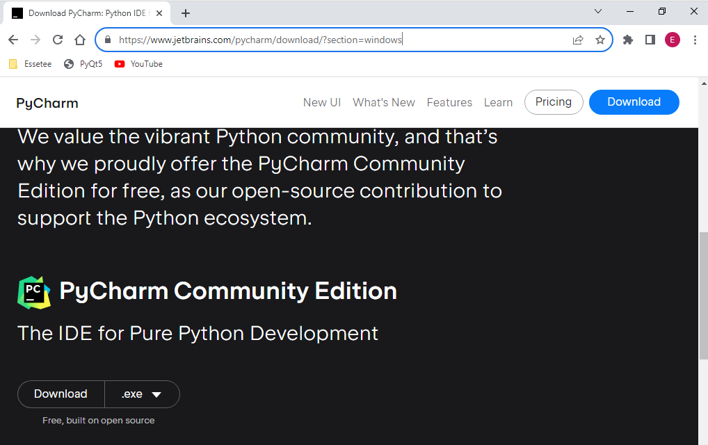 Goto https://www.jetbrains.com/pycharm/download/?section=windows, scroll down and download the community version.