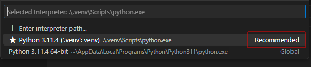 That was the hard way. Most of the time if you start a new project, as soon as you make your virtual environment (python.exe -m venv .venv) vscode will popup a window at the under right corner if you wish to set this environment to use with your project. Click on yes and you're done.If not, you know the hard way.